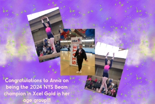 Congratulations to Anna on being the 2024 NYS Beam champion in Xcel Gold in her age group!!!