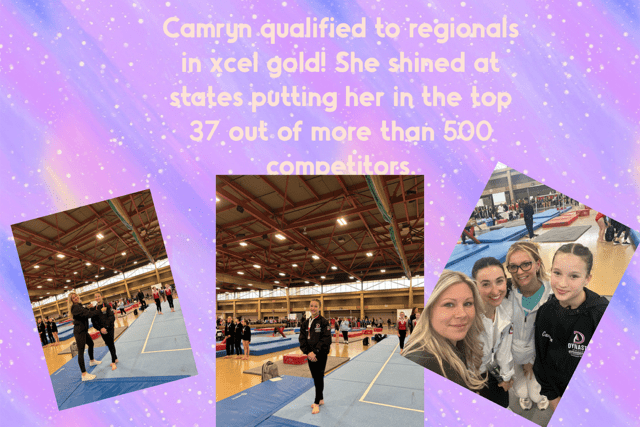 Camryn qualified to regionals in Xcel Gold! She shined at states putting her in the top 37 out of more than 500 competitors!
